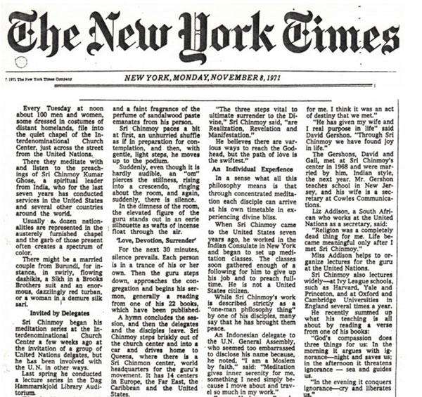 A selection of archive newspaper articles about Sri Chinmoy.