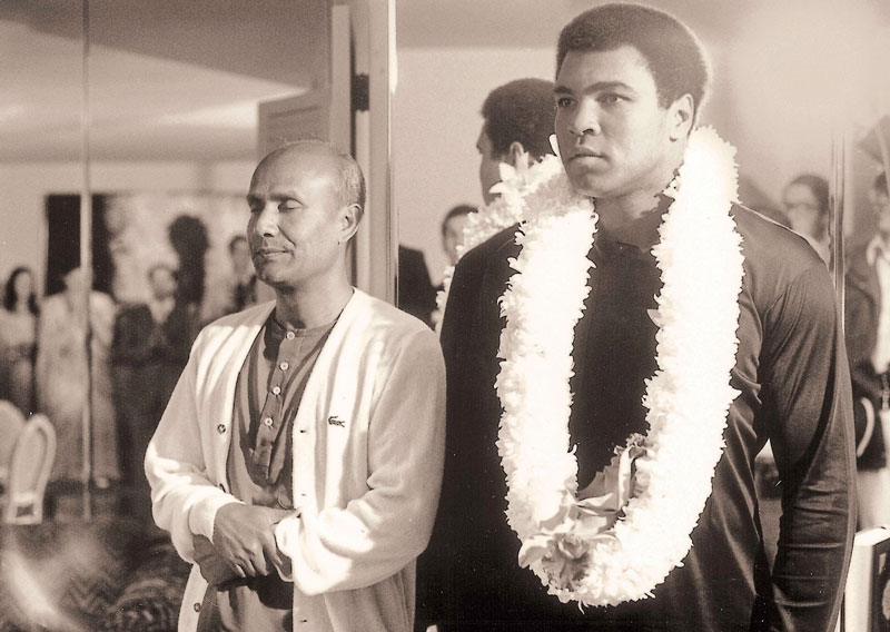 Sri Chinmoy met with Muhammad Ali for the first time on 25 January 1976 in Puerto Rico. Also present was Ali's manager Herbert Muhammad. They enjoyed a meaningful conversation on spirituality and boxing. A transcript of their conversation is available in the booklet 'Muhammad Ali and Sri Chinmoy'.
